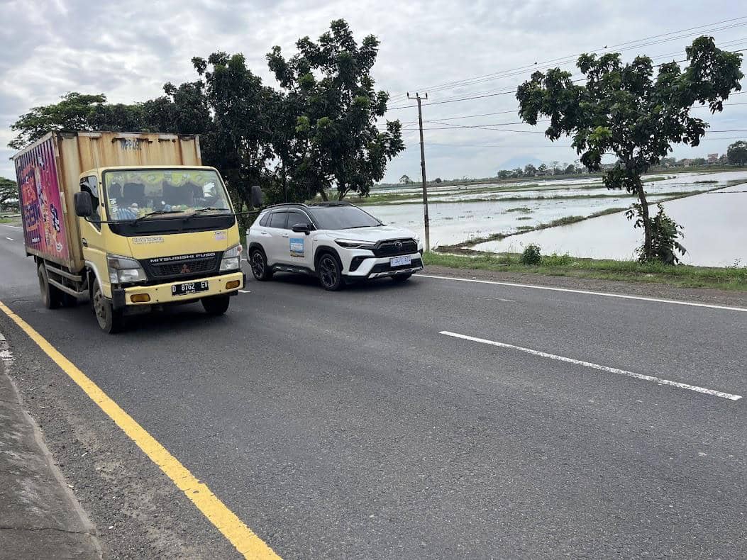 Untungnya, salah satu mobil yang kami gunakan adalah Toyota Cross hybrid. Dengan mobil ini, urusan salip-menyalip truk jadi menyenangkan karena tarikan mesinnya yang cukup responsif.