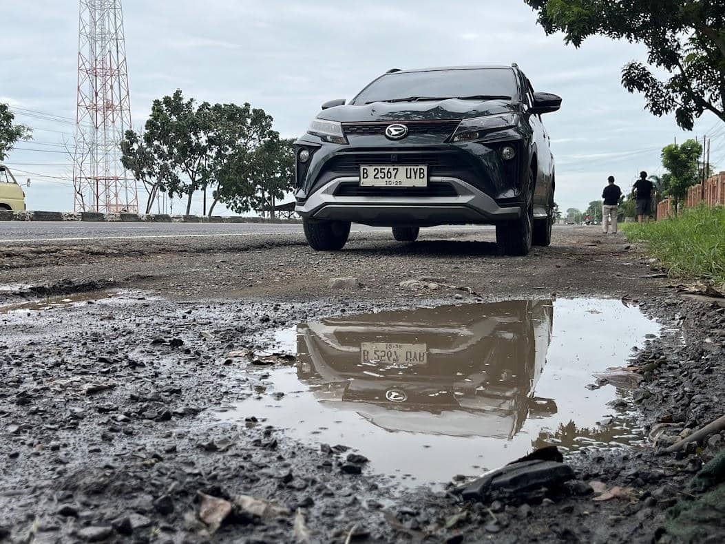Kondisi, tentu saja, membuat perjalanan jadi tidak nyaman. Selain itu, lubang jalan juga sangat berbahaya bagi pengendara motor, terutama pada malam hari. Selain lubang dan kondisi jalan yang relatif kurang mulus, pemudik yang lewat jalur Pantura juga harus mewaspadai debu dan cuaca panas. Kami beruntung menggunakan Daihatsu Terios dalam perjalanan ini. Kaki-kakinya yang kuat dan ground clearance-nya tinggi membuat kami cukup percaya diri saat melibas lubang-lubang jalan.